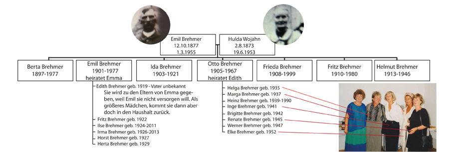 Hulda Wojahn kam aus einer Familie, die ursprünglich eine Gastwirtschaft besaß. Eine Seuche hat ihre Familie jedoch fast vollständig vernichtet. Dadurch ist Hulda sehr verarmt und hatte wohl keine Unterstützung, als von 1914-1918 der 1. Weltkrieg tobte: Es wird erzählt, dass Emil lange im Krieg gewesen ist und Hulda die Kinder alleine durchbringen mußte. Ein Russe bot ihr seine Hilfe an und sie wurde schwanger von ihm. Als Emil das Baby in der Wiege sah, hob er das Bettchen hoch und ließ es fallen. Das Kind starb! Hulda mußte es alleine beerdigen. Das war ein Mord und erfüllt uns mit entsetzen. Im 1. Weltkrieg war so etwas wohl an der Tagesordnung.